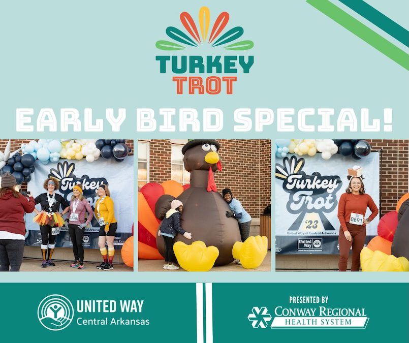 The 11th Annual United Way Turkey Trot 5k and Gobble Wobble Kid’s Mile is planned for 8 a.m. on Thanksgiving, Nov. 27, at the University of Central Arkansas’s Estes Stadium.