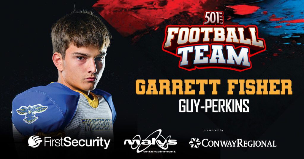Guy-Perkins Thunderbirds senior Garrett Fisher, a dual-threat quarterback and safety, is a rising force on the field despite being relatively new to the sport. A lifelong Razorbacks fan, he had never played football until his junior year but embraced the challenge.