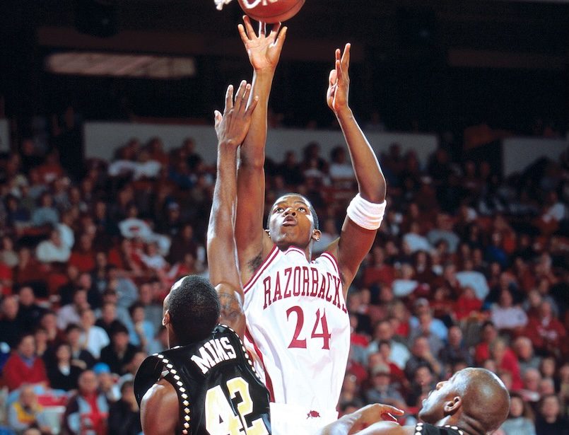 I would argue that Joe Johnson is the most talented basketball player to ever wear a Razorback uniform. I won’t go quite so far as to say he is the greatest Hog baller ever, although he’d be near the top of that list, but as far as talent, I do not think there has been anyone who can match him. Standing 6 feet 7 inches tall and eventually weighing up to 240 pounds, Johnson was a physical specimen. He was a shooting guard/small forward who could handle the ball and play defense.
