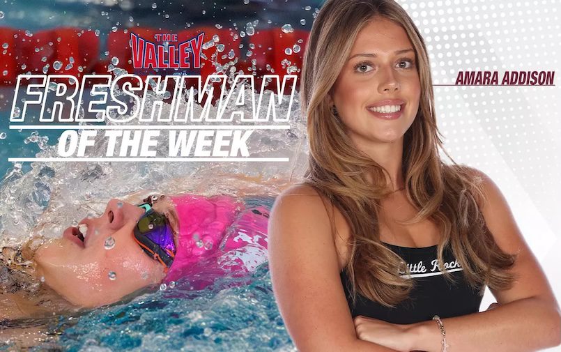 LITTLE ROCK — After a standout weekend in her collegiate debut season, freshman Amara Addison has been named the Missouri Valley Conference Freshman Swimmer of the Week following her performance at the 2025 Little Rock Fall Invite.