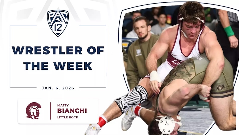 Bianchi previously earned the honor on Nov. 19 earlier this season, as well as Feb. 11, 2025, and Feb. 1, 2023. He joins Oregon State’s Maximo Renteria as the only Pac-12 wrestlers to receive the award multiple times this season and gives Little Rock four of the conference’s seven weekly honors so far in 2025-26.