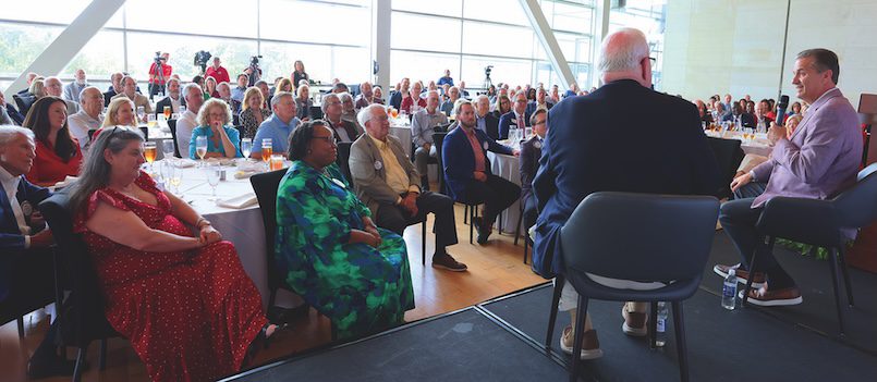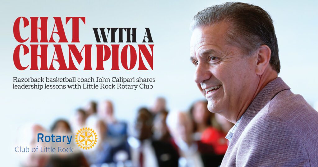 An overflow crowd gathered at the Clinton Presidential Library on July 15 to hear an energetic and inspirational speech from University of Arkansas basketball coach John Calipari. The head Hog was the featured speaker at the weekly meeting of the Rotary Club of Little Rock, which meets there in the Great Room each Tuesday for lunch.