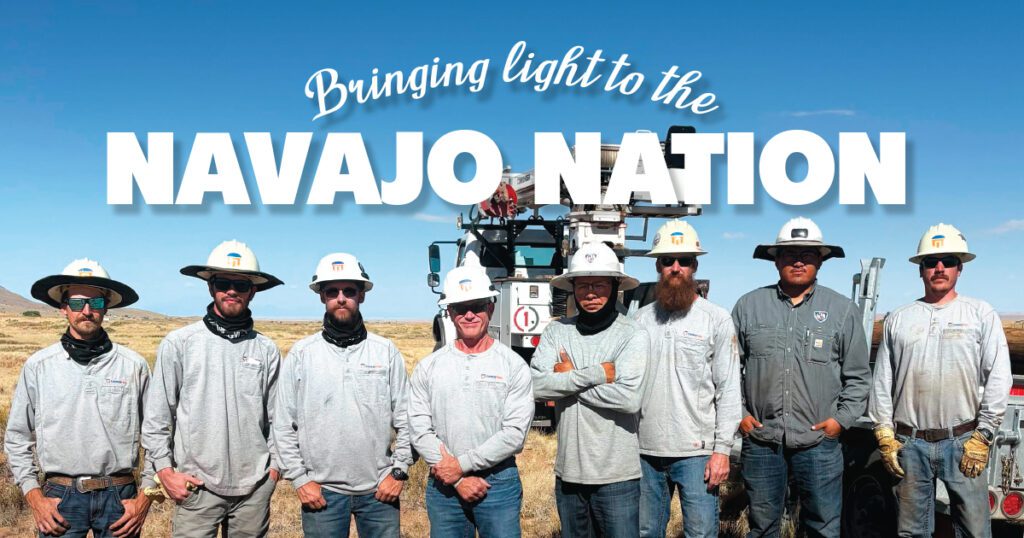 “I am honored to get the chance to go build power lines in the Navajo Nation,” he said. “Getting to work alongside Navajo linemen is something I’ll never forget. We worked long hours through high winds that blew sand everywhere in the hot sun with zero shade. My favorite part was meeting a grandfather and his grandchildren, whom we provided power for. They invited us into their hogan (home), which was so cool. They were so happy to have power now. Working there was one of the most rewarding experiences in my career.”