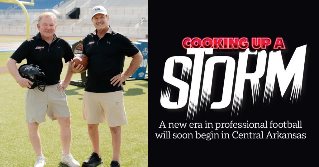 Former Arkansas Razorback and Mayflower High School product Lerinezo Robinson is serving as Storm Ambassador and player development director. “Robinson, who played for the Razorbacks under Houston Nutt, has developed a pipeline to all colleges in and around the state,” Flynn said. “This is where we hope to pick up a lot of our talent moving forward, promoting Arkansas kids from Arkansas colleges.”