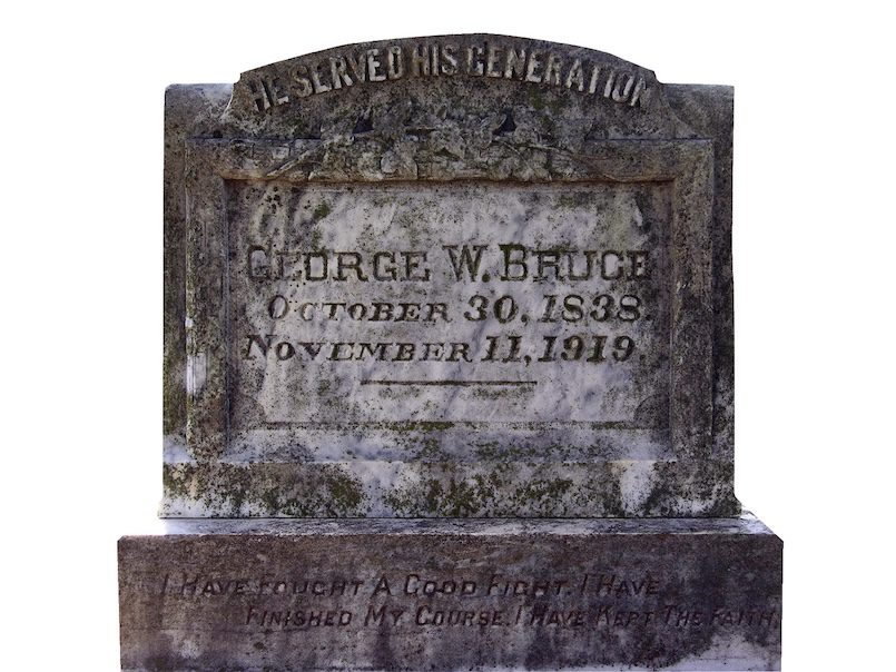 Bruce’s tombstone states at the top, “He Served His Generation.” The same could be said of his colleagues. Attributed to him at the bottom is, “I have fought a good fight, I have finished my course. I have kept the faith.” (This is a quote from II Timothy 4:7.) Oh, that we could all say the same!