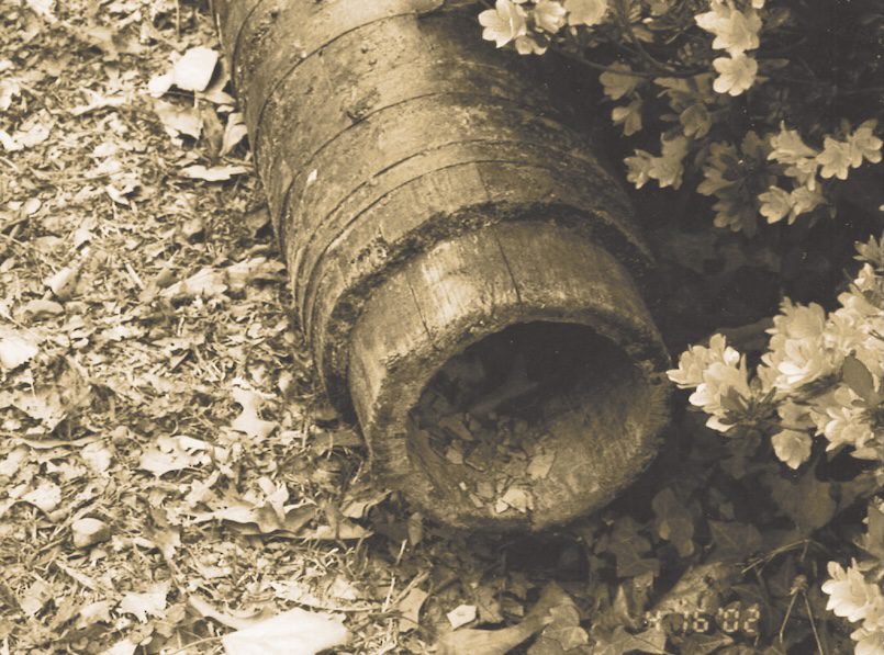 Progress with its water system was slower for various reasons. By 1912, wooden water mains were failing and were replaced with cast iron pipe. In about 2009, the concrete street in front of my antique home was broken up to install new water mains, and although the wooden mains were not in use, some still remained underground. Workers asked if I would like one and I did. It was constructed with slightly curved wooden slats coated with tar and held together with metal bands.