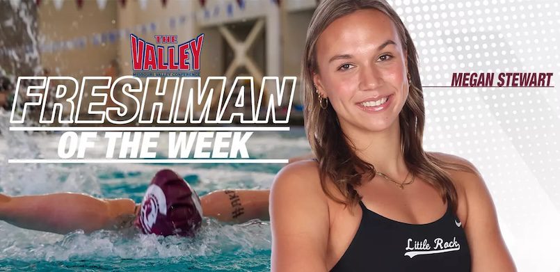 LITTLE ROCK — Freshman Megan Stewart has been named the Missouri Valley Conference Freshman of the Week following an outstanding performance at the Rice Fall Splash in Houston. Stewart continued to make an early mark in her debut season, collecting an individual event victory and contributing to multiple top finishes that highlighted Little Rock’s impressive weekend showing.