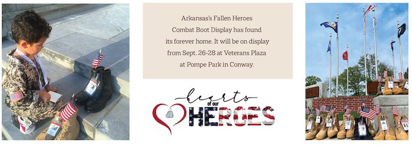 “Having the Fallen Heroes Combat Boot Display in Conway last year proved to be instrumental for the community to see what freedom looks like,” she said. “Veterans Plaza at Pompe Park provides a beautiful setting for visitors to walk among the boots and learn the stories of these courageous men and women. We are thankful to the city of Conway for allowing us to continue to honor and remember our heroes in this way.”