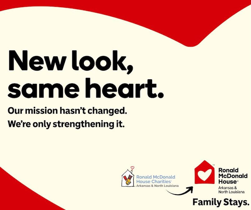 LITTLE ROCK — Ronald McDonald House Arkansas & North Louisiana shared earlier this year that Ronald McDonald House Global would soon reveal a refreshed brand identity for all its chapters. The refresh was spurred by an effort to increase understanding of its work and attract the next generation of donors. While maintaining our core mission of supporting families during medical crises, Ronald McDonald House Arkansas & North Louisiana was chosen as an early adopter for this new, bold initiative and global campaign and will begin adopting the new identity starting today.
