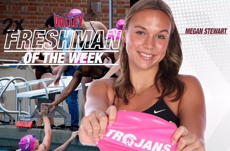 Stewart continued her impressive debut season by capturing first place in the 400 IM with a school-record time of 4:21.26, breaking the previous program mark while also delivering one of the top times in the MVC this season. She added a fifth-place finish in the 200 freestyle (1:51.58), helping the Trojans post several of their best in-season swims of the year.